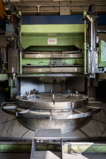 Macchina altamente performante con platò da 2800 mm (tornibile fino a 2860 mm), altezza utile 1400 mm, equipaggiata con doppio RAM CNC: uno per tornitura e uno per fresatura e foratura su asse C.